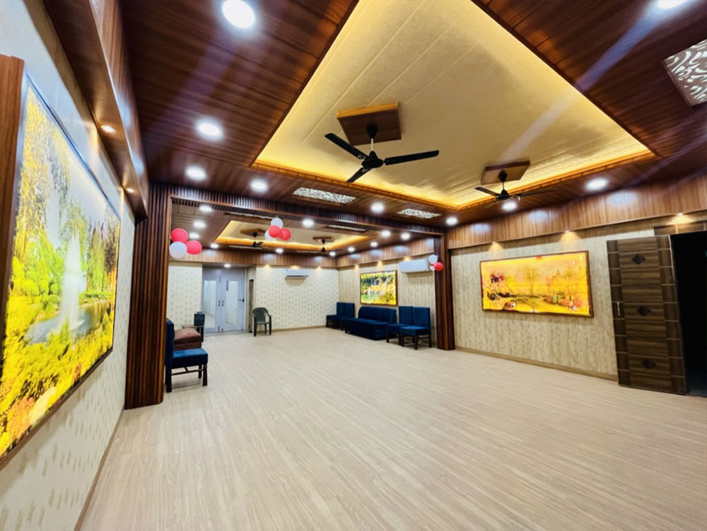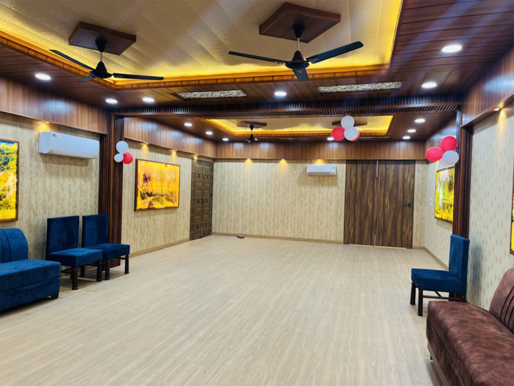The Exclusive Ballroom is an intimate venue designed for gatherings of 70 to 100 guests. It is the perfect choice for birthdays, anniversaries, family get-togethers, official meetings, and small traditional functions such as Tilak or Chekha ceremonies.